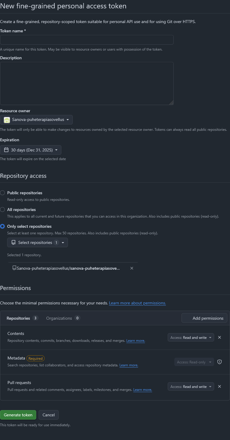 lähdevarastolle, eli valitsemalla only select repositories